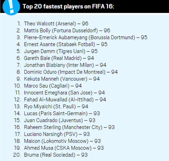 Les 20 joueurs les plus rapides sur FIFA 16 :