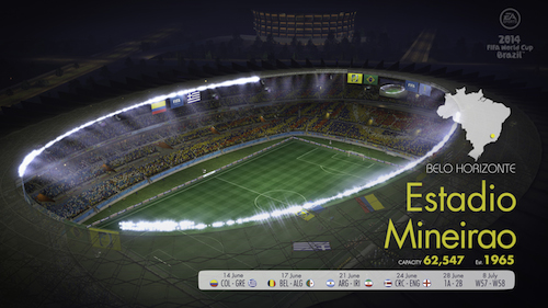(Très) peu de temps avant la sortie de Coupe du Monde de la Fifa : Brésil 2014 qui mettra à l’honneur, on s’en doute, le Mondial 2014 qui commencera en juin, EA Sports nous propose de découvrir 12 stades officiels de la compétition que l’on retrouvera dans le jeu de la franchise sur le lien suivant : ici. Au total, il y aura 21 stades disponibles sur le jeu qui sortira sur PS3 et Xbox 360 ! Vivement demain pour sa sortie !