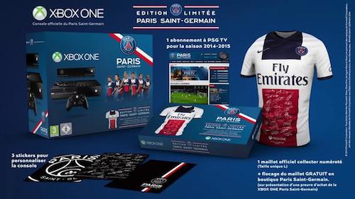 La Xbox One version PSG, c’est ce que vous allez avoir si vous faites parti des chanceux qui achèteront la console de salon prochainement. En effet, Microsoft et le club parisien viennent d’annoncer une édition limitée qui sortira début mai et vaudra la coquette somme de 579,99 euros chez Micromania uniquement. Avec la console aux couleurs de l’équipe, vous aurez 3 stickers pour la machine, 1 abonnement à PSG TV pour la saison prochaine et un maillot collector du PSG taille L.