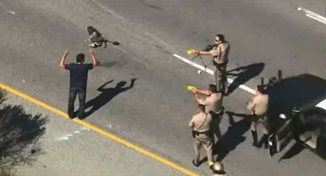 La vidéo fait le buzz sur la toile ! La scène se passe le 17 Mars en Californie et est retransmise en direct à la télévision américaine. Sur plus 150 Km, un conducteur d’un 4X4 se lance dans une course-poursuite avec la police américaine qu’il tente de semer sur l’autoroute et ce malgré une roue avant gauche totalement crevée.