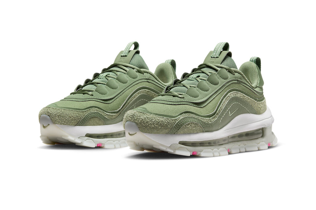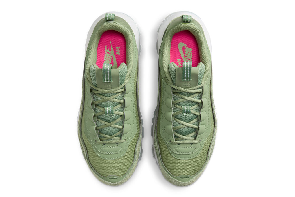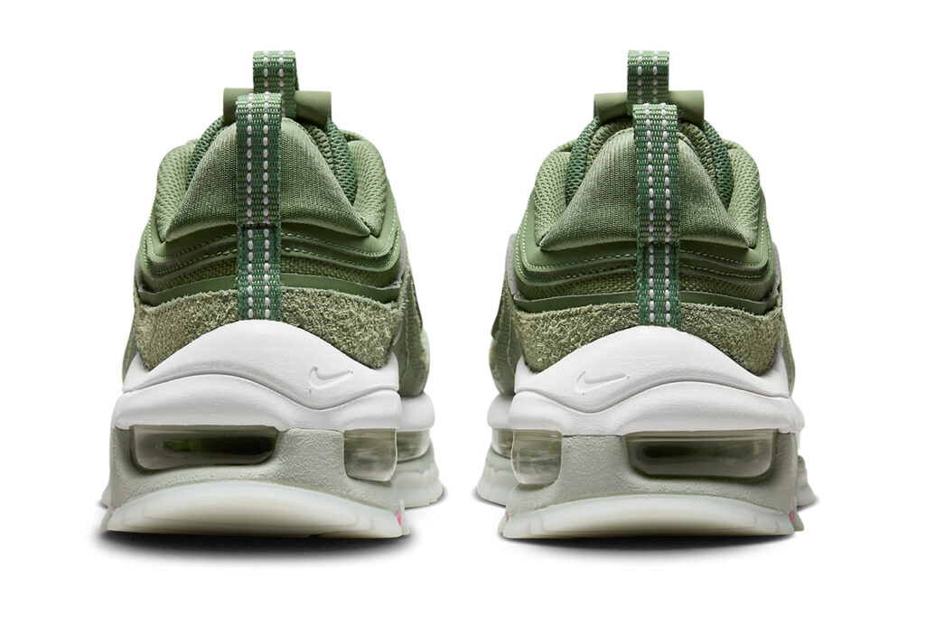 Dans les grandes lignes, cette itération inédite gagne en hauteur, tandis que l’upper vert la décorant hérite de multiples surcouches nuancées. Des touches de daim viennent s’imposer ici et là sur cette sneaker marquée d’un branding « Air Max », et qui devrait logiquement être lancée sur les étals dans les prochains mois. Avant d’être proposée dans une multitude de coloris inédits ?