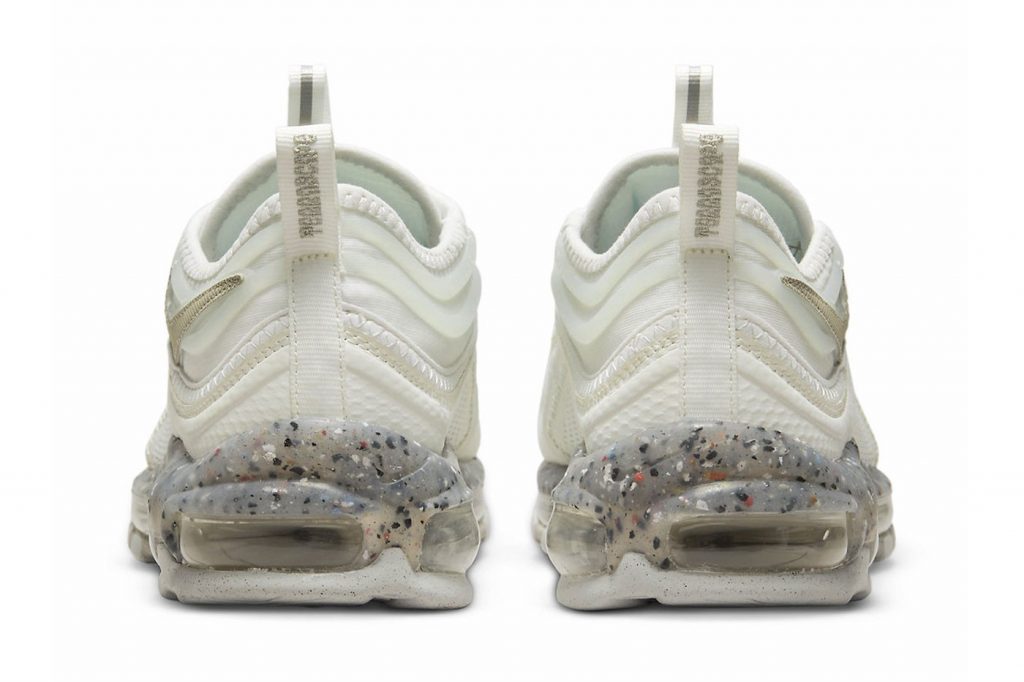 Un branding « Move to Zero » orne les semelles intérieures, confirmant l’utilisation de matériaux recyclés. Des matériaux estampillés « Nike Grind » auront pour leur part été utilisés pour les semelles intérieures. Une semelle extérieure en caoutchouc gris bicolore se charge de confirmer le design durable de cette AM97, dont la date de sortie n’a pas été communiquée pour le moment.