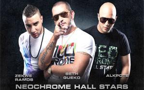 Initialement, Alkpote et Seth gueko avaient prévu d’enregistrer un album commun. « De 2004 à 2006, on se fréquentait beaucoup avec Al-K puisqu’on devait passer cinq jours sur sept ensemble (…) On a toujours conservé cette frustration de ne pas avoir travaillé sur un album commun, parce que ça coulait de source à l’époque », révèle le rappeur de Saint-Ouen-l’Aumône. C’est Granit, l’actuel patron de Neochrome, qui a ensuite suggéré de sortir un projet en trio, avec Zekwe. Sur Neochrome Hall Stars, ce dernier a officié en tant que directeur artistique, en plus d’amener une certaine originalité grâce à ses refrains chantés.