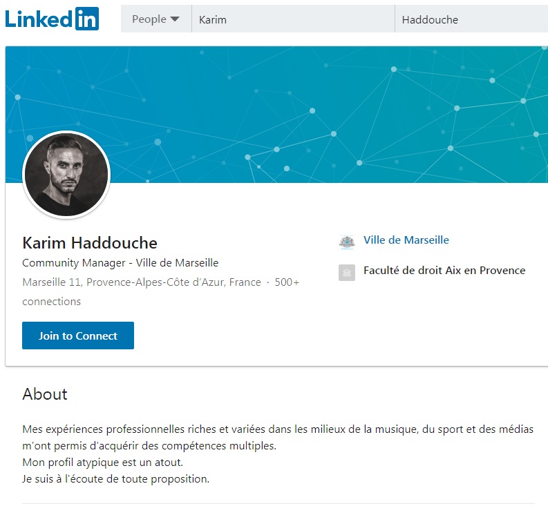 Rassurez-vous, l’ancien chef de file de la Section Nique Tout n’a cependant pas sombré dans les délires corpo les plus sombres en postant à tout va des hymnes à la win et à la disruption. En lieu et place, il s’est contenté de quelques lignes de présentation qui vantent « ses expériences professionnelles riches et variées » ainsi que le côté « atypique » de son profil.