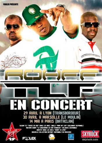 TLF & Rohff seront en concert pour 3 dates exceptionnelles, le 29 avril à Lyon au Transbordeur, Le 30 avril à Marseille au Moulin et le 14 mai à Paris au bataclan.
