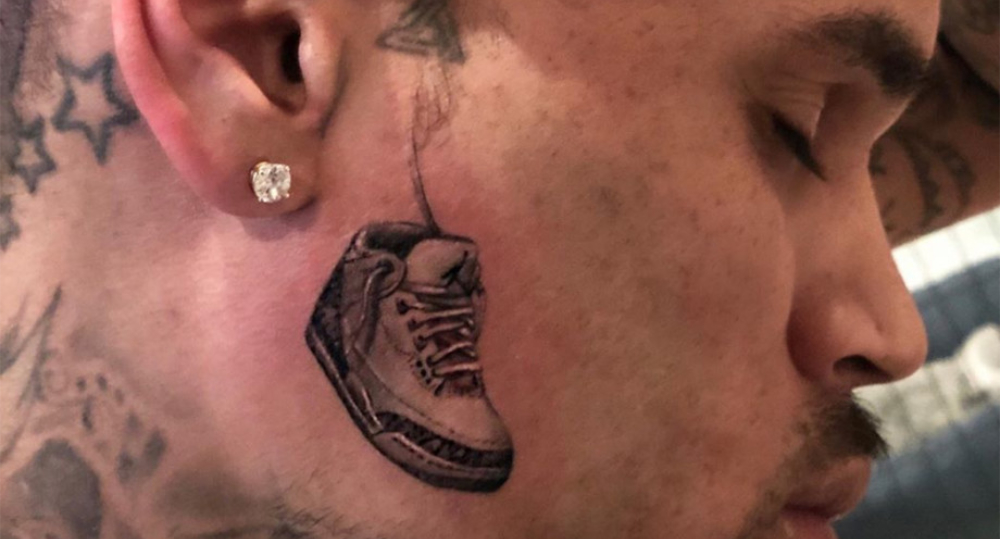 A la façon d’un Post Malone, Chris Brown se laisse tenter par les tatouages sur le visage. Le chanteur est ainsi apparu avec une Air Jordan 3 encrée sur sa joue.