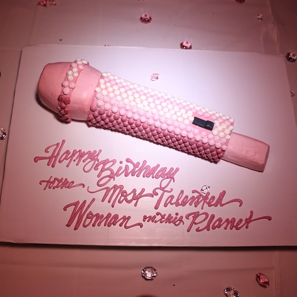L’artiste Young Money n’est pas connue pour sa discretion. Alors pour son anniversaire elle s’est lâchée ! D’abord elle est arrivée à bord du Lamborghini Aventador rose fluo, conduite par son backeur Scaff Breezy. Ensuite dans cette soirée, qui était aussi un évènement pour la promotion de sa boisson Myx Moscato. Nicki a reçu deux gâteaux (un en forme de micro et l’autre en forme de poitrine) et une barre de striptease. La grande classe comme d’habitude.