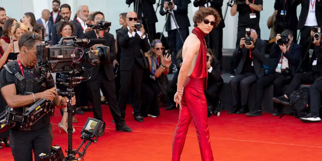 En 2022, lors de l’avant-première de Bones and All à la Mostra de Venise, il est apparu dans un costume dos-nu rouge. L’acteur a laissé transparaître sa féminité et électrisé la foule.