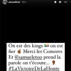 Sur sa story Instagram, Alonzo n’a pas hésité à interpeller directement le président de la fédération camerounaise : « Mon cousin tu vois ça, et tu ne dis rien ?! Pas toi Samuel… (…) On est des Kings, on est fiers. Merci les Comores et Samuel Eto’o, prend la parole on t’écoute. La victoire de la honte ! » écrit-il (sic).