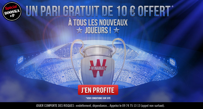 Cliquez sur ce lien Winamax ou sur l’image ci-dessous pour obtenir vos 10€ gratuitement !