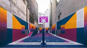 Cette fois, les couleurs vives appliquées par le Ill Studio et qui faisaient sa marque de fabrique ont laissé place à un revêtement un peu plus sobre dans son approche, comme vous allez pouvoir le constater. Redécoré pour marquer la dernière collaboration en date entre Nike et Pigalle, le playground Duperré est désormais marqué par des tons violets, relevés par du jaune, du bleu et des touches de rose. C’est frais, c’est coloré, et ça se situe pour la petite histoire entre deux immeubles, au 22 rue Duperré. Pour y accéder, arrêtez vous au Métro Pigalle. L’été, l’endroit est ouvert de 10h à 22h. Pas trop indiqué pour les nocturnes, mais étant donné le nombre de terrains similaires dans la capitale, il est plutôt difficile de faire la fine bouche…