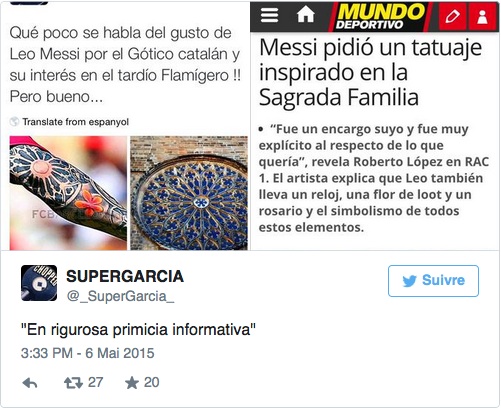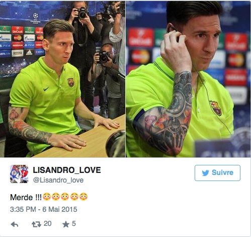 «Sur le coude notamment, il y a les ornements d’un vitrail de la Sagrada Familia, une de ses demandes. Barcelone, c’est sa vie. Ce tatouage, inspiré de ce monument local, le démontre. Sur le bras, il a une horloge pour symboliser le temps qui passe. Une fleur de lotus aussi, car elle pousse dans des endroits inattendus comme son talent est apparu. Et il a une carte de l’Amérique du sud, et un rosaire de la forme de Rosario, sa ville natale» a-t-il expliqué.