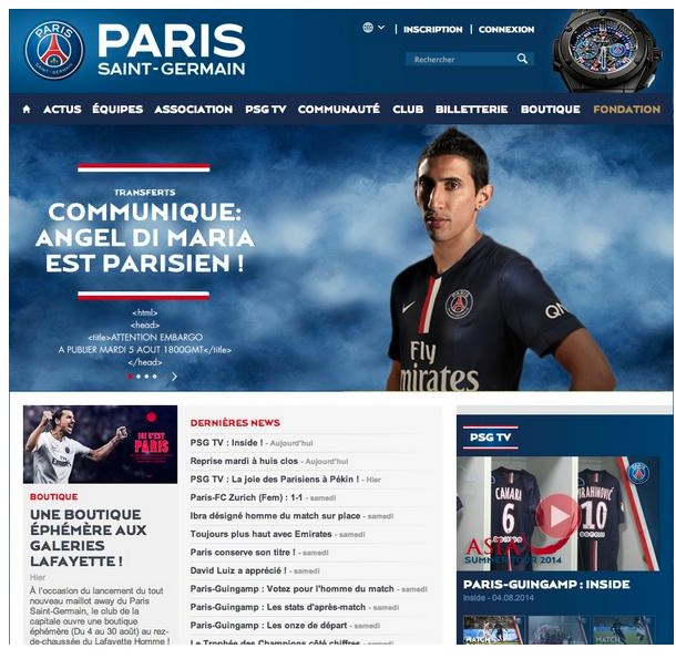 Depuis hier soir, une capture d’écran de ce qui semble être le site officiel du Paris Saint-Germain est diffusée à grande échelle avec la mention « à publier mardi 5 août 18h GMT ».